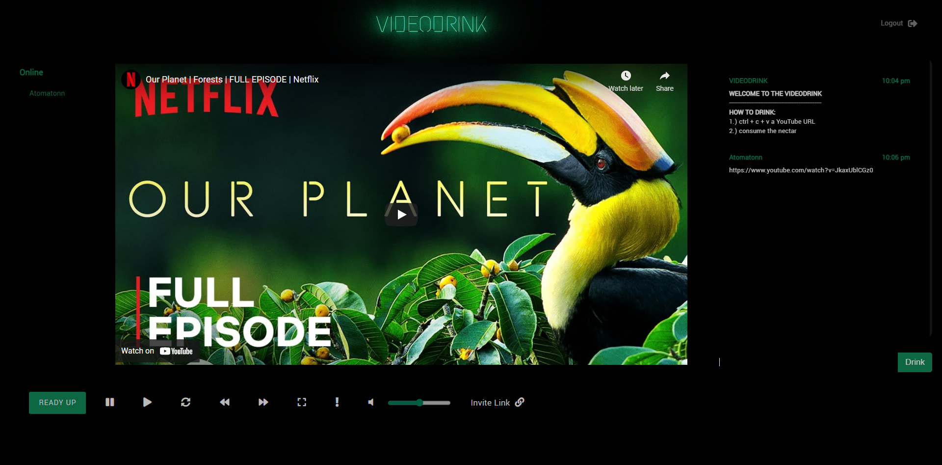 videos with friends! Features room creation, chat room feature, video controls